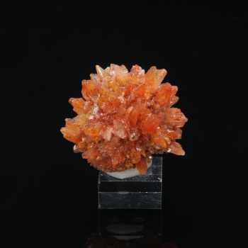 Aragonite in sprays of orange pseudo-hexagonal crystals (colored by iron oxides), translucent and perfectly finished. Discovered early 2022 in Morocco.4,4 x 4,2 x 3 cm.Reference : 2601-LM2T
