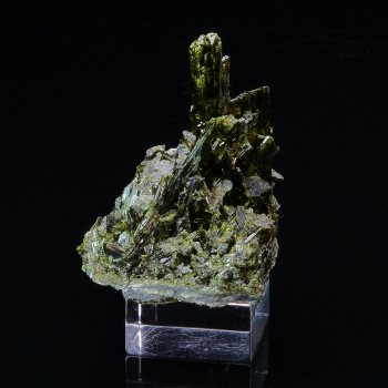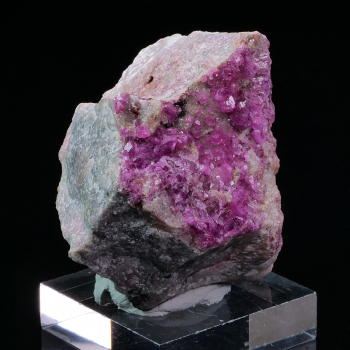 Native silver dendrites in a calcite matrix. A few bright-red proustite crystals are present on the back. As proustite is light-sensitive, this piece should be kept away from light. 7 x 5 x 3 cm. Reference : 3615-LM2T