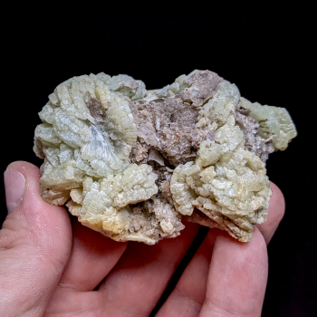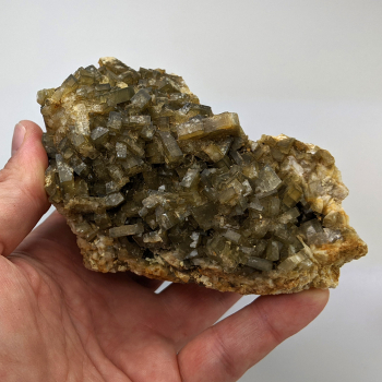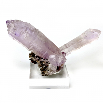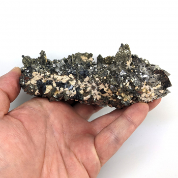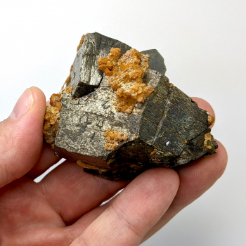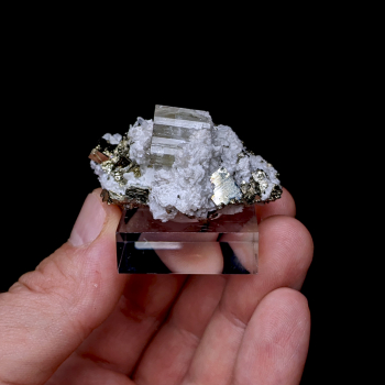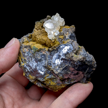 Interesting piece on a gangue of galena and goethite with an intact crystallization of transparent cerussite.It comes from Touissit, District of Touissit-Bou Beker, Province of Jerada, Oriental, Morocco.This piece measures 7 cm long by 6.2 cm high and 4.8 cm at its thickest.Its weight is 512...