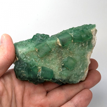 Amazing manganocalcite with several terminations.Slightly pinkish specimen of 165 grams from Dalnegorsk, Russia.Old piece measuring 7.6 cm long by 4.5 cm wide by 3.4 cm thick.This calcite is UV reactive.Additional photos and order online on the DGmineraux...