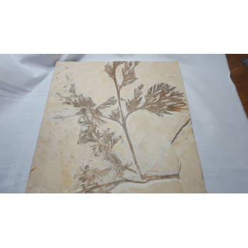 Large plate with a branch of Ruffordia aff. goeppertii from the aptian of Nova Olinda, Brazil, rare of this size. 23 x 30 cm. Reference : 0225