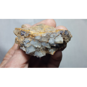 Small fluorite, clear blue with purple heart, from Sauvagnat, tiny occurrence very close to Puy Saint Gulmier, (unique pocket discovered in 2016). 6,2 x 4,4 x 3,3 cm. Reference : 0152-RuFo