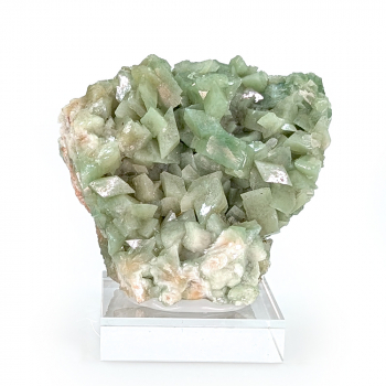 Rare heulandite crystals with green celadonite inclusions on matrix.This mineral comes from the Sakur quarry located in the Nashik region of Maharashtra, India.It measures 6.3 x 5.8 x 3 cm.This sample weighs 111 grams.(Measurements excluding the base)Additional photos and online ordering on the...