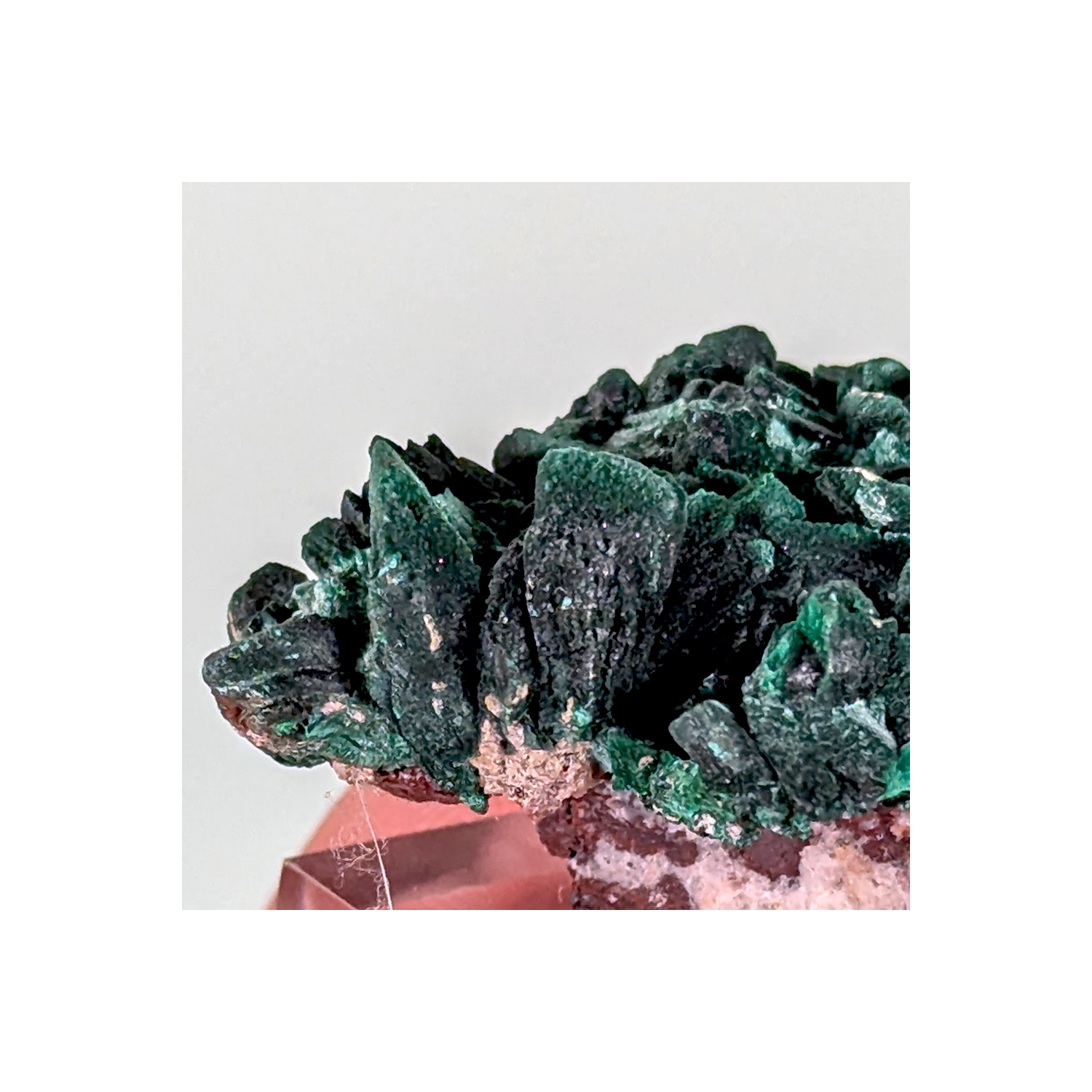 An interesting piece featuring a carpet of azurite crystals pseudomorphed into malachite.