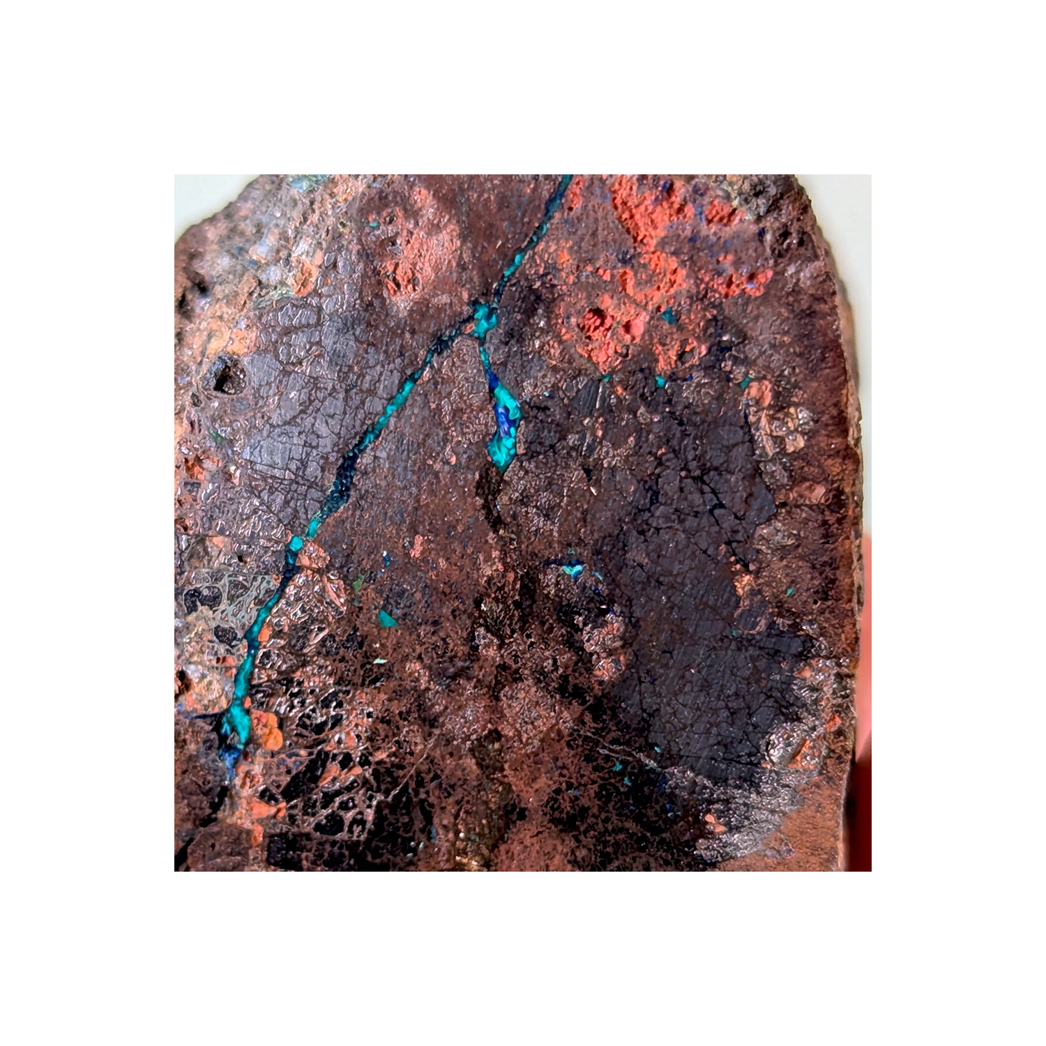 Sample of rough, cut and polished cuprite from the former collection of a BRGM geologist.