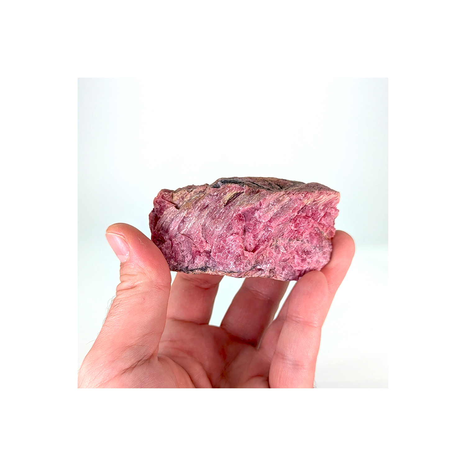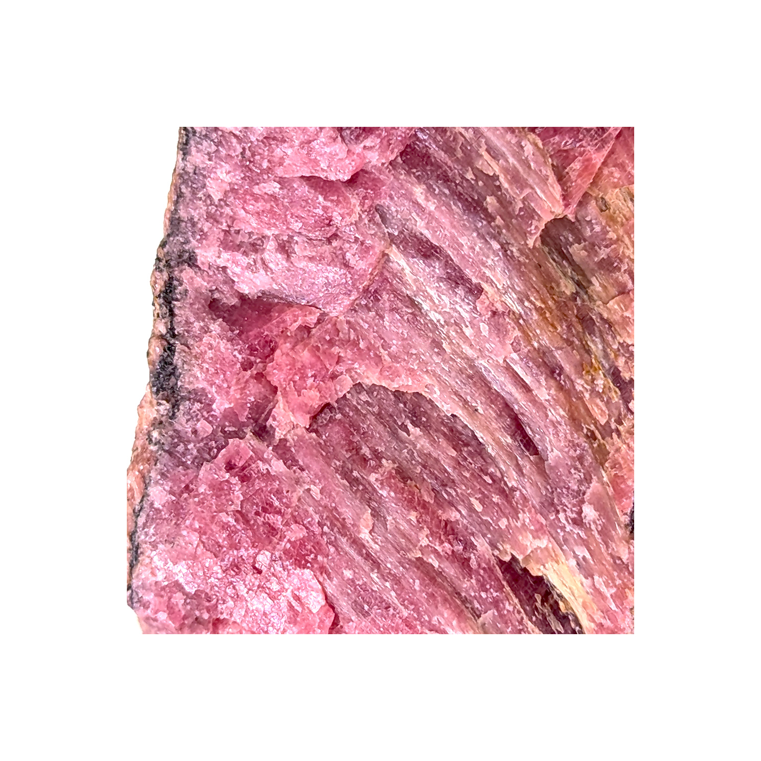 A piece of pyroxmangite (a silicate with the same chemical composition as rhodonite), partially crystallized and pink in color.