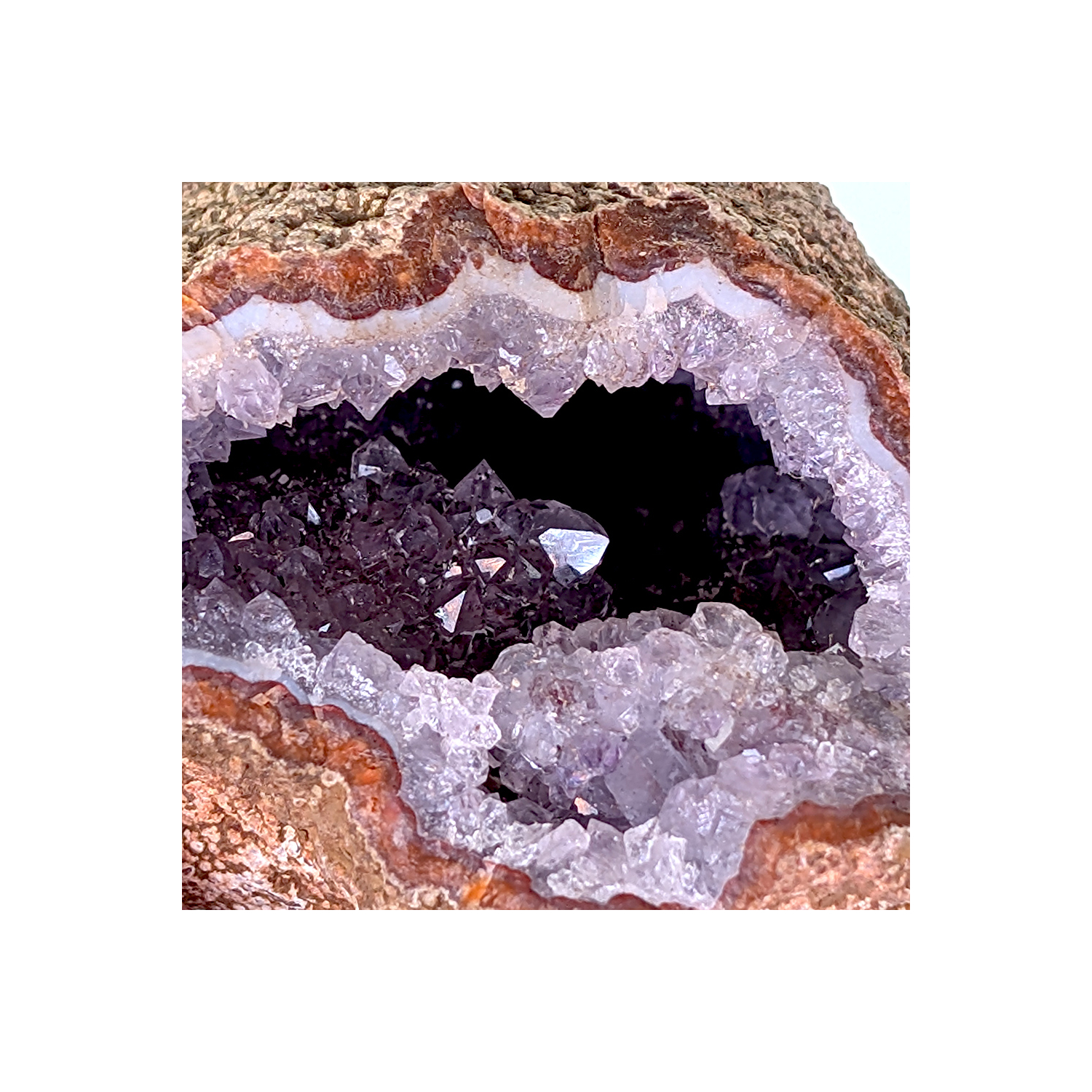 Beautiful geode filled to the bottom with brilliant amethyst crystals.
