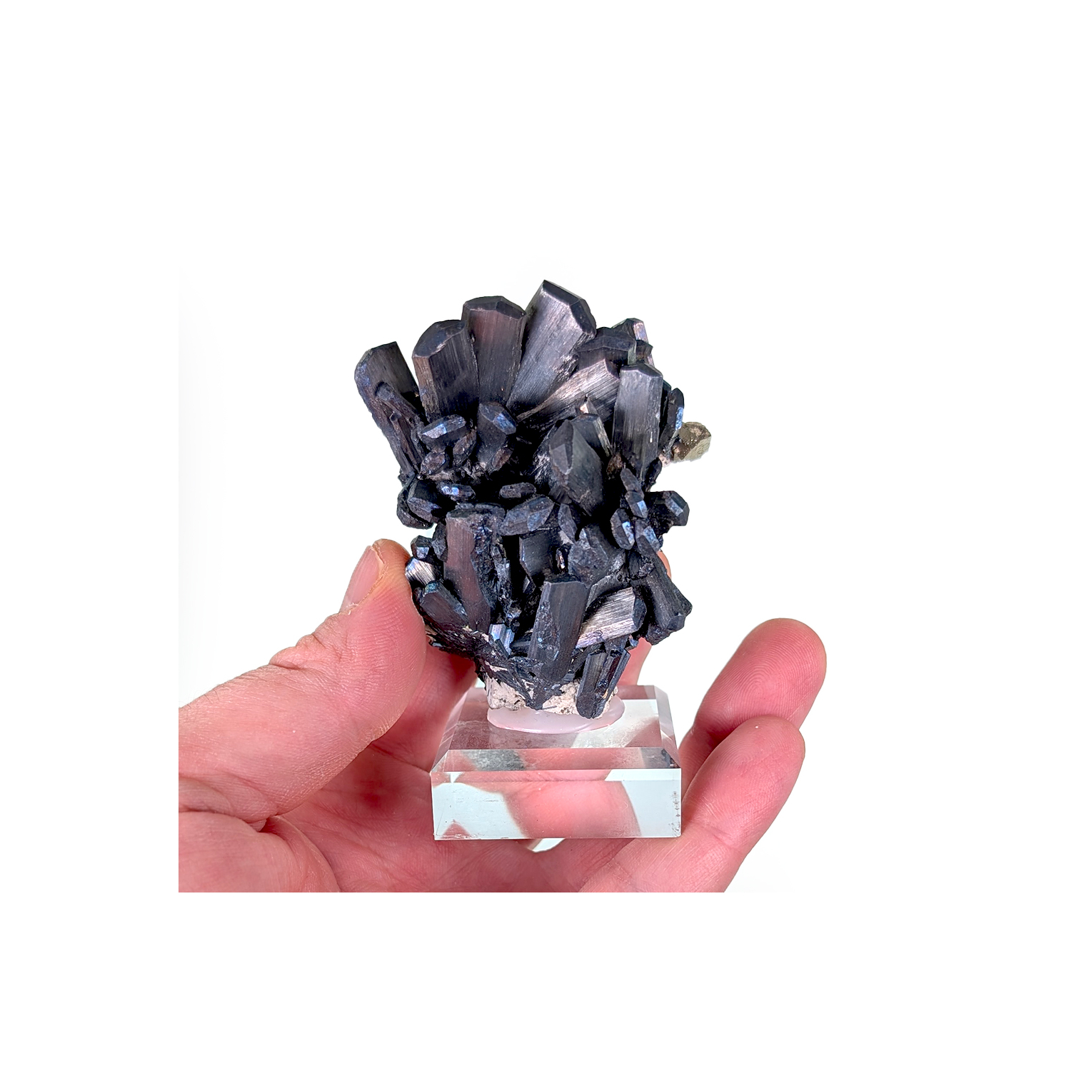 A pleasing presentation for this aggregate of stibnite crystals, accompanied by a small amount of pyrite.