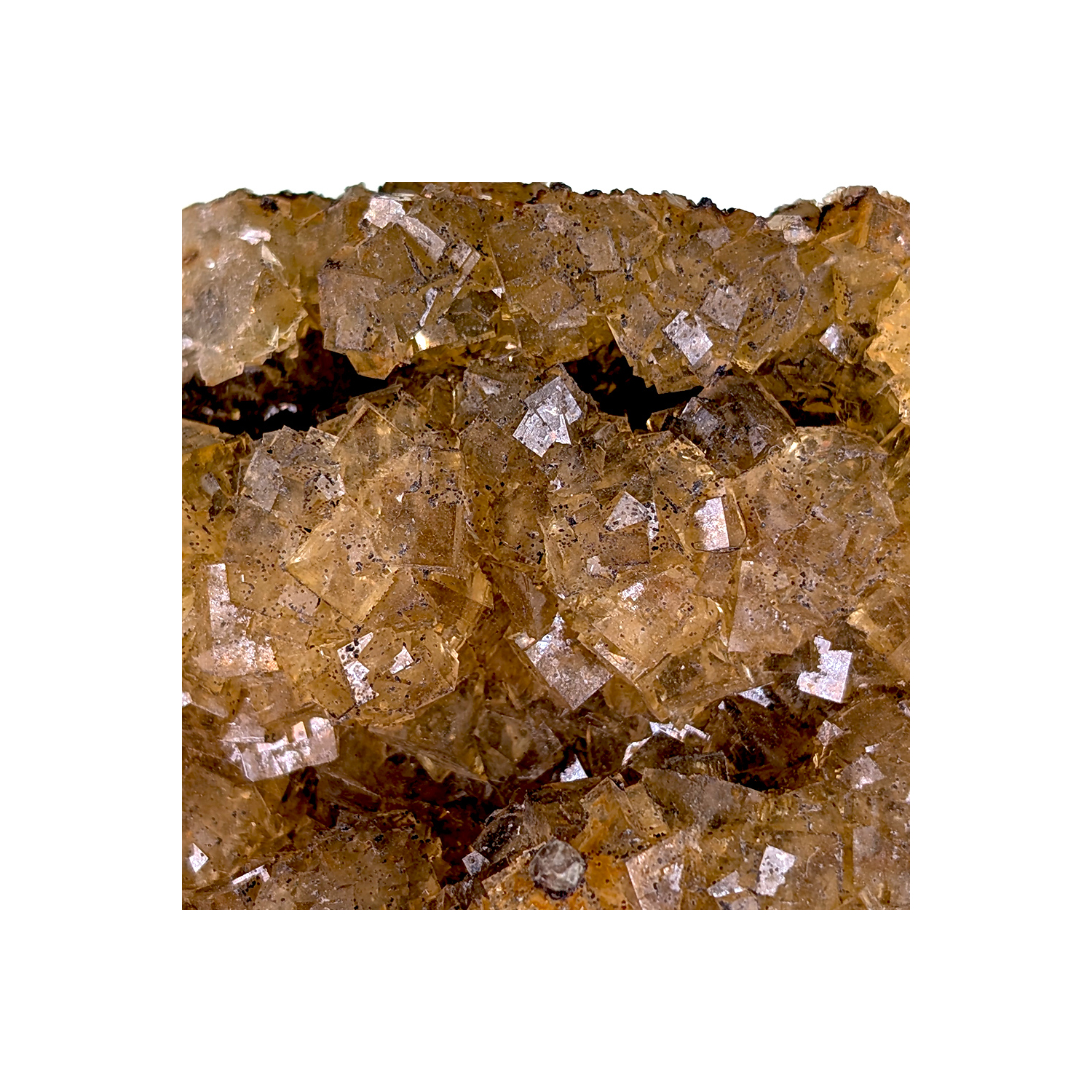 A Spanish classic: this honey-yellow fluorite is accompanied by pyrite inclusions.