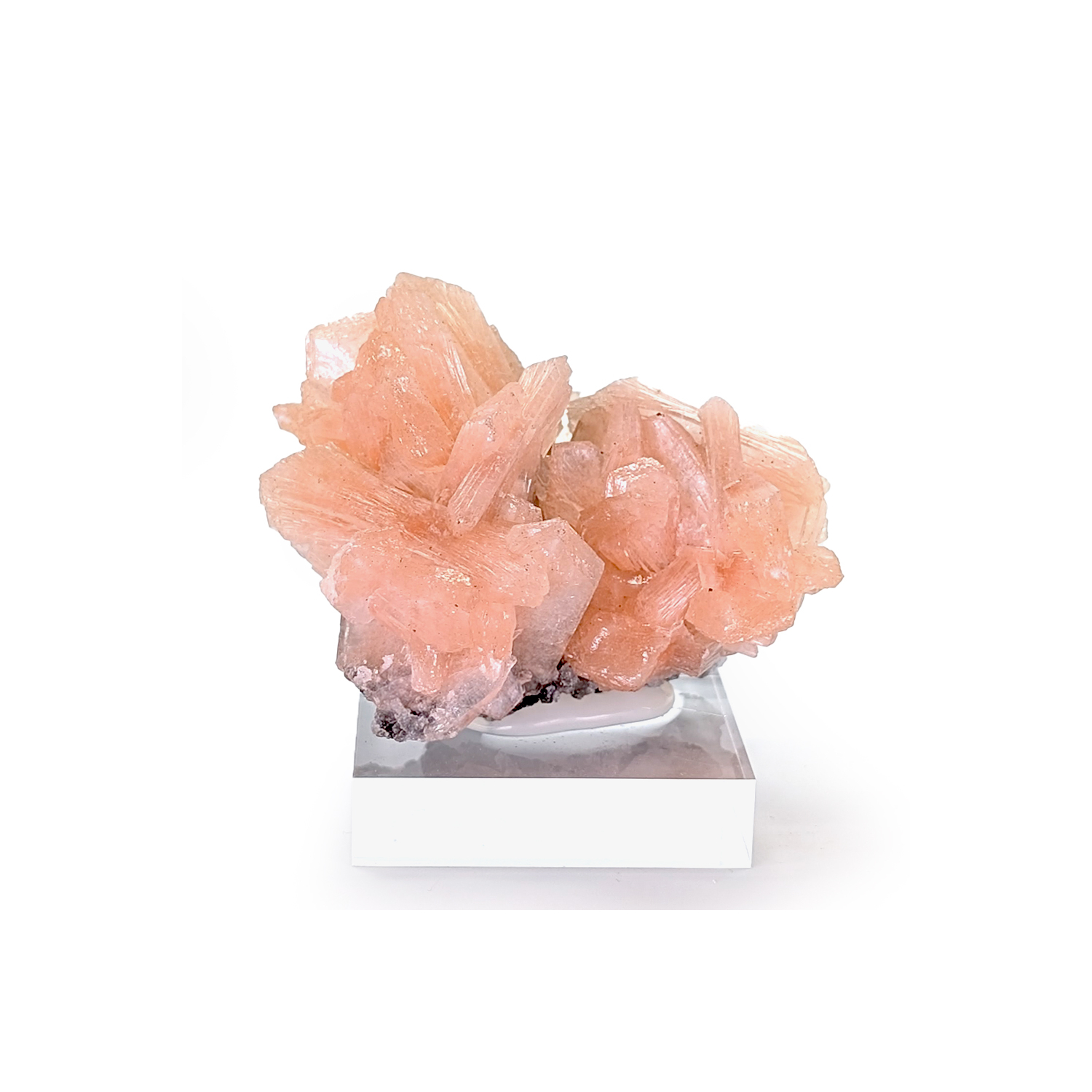 A pleasing presentation for this salmon-colored stilbite specimen, set in a chalcedony matrix.