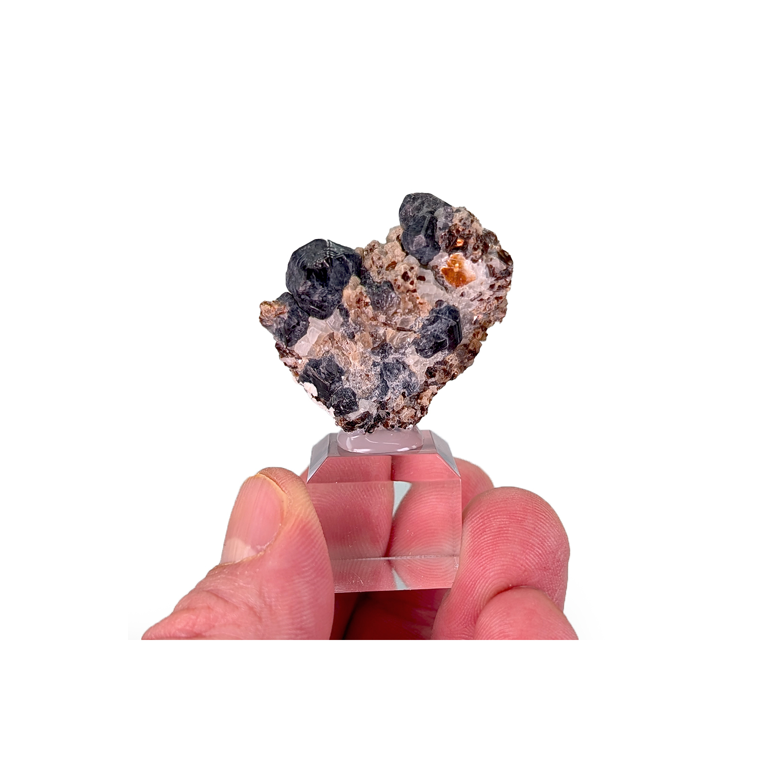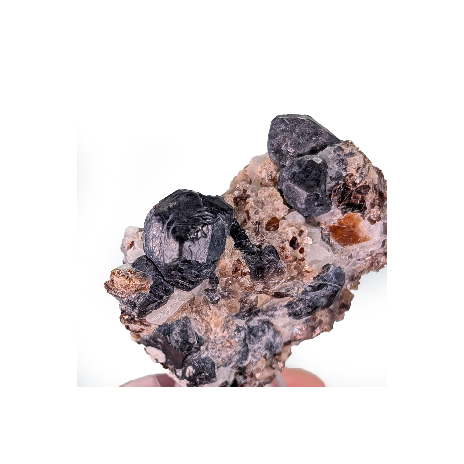 Rare blue sapphirine crystals, the largest measuring 1 cm at its longest point, in a matrix rich in phlogopite (mica).