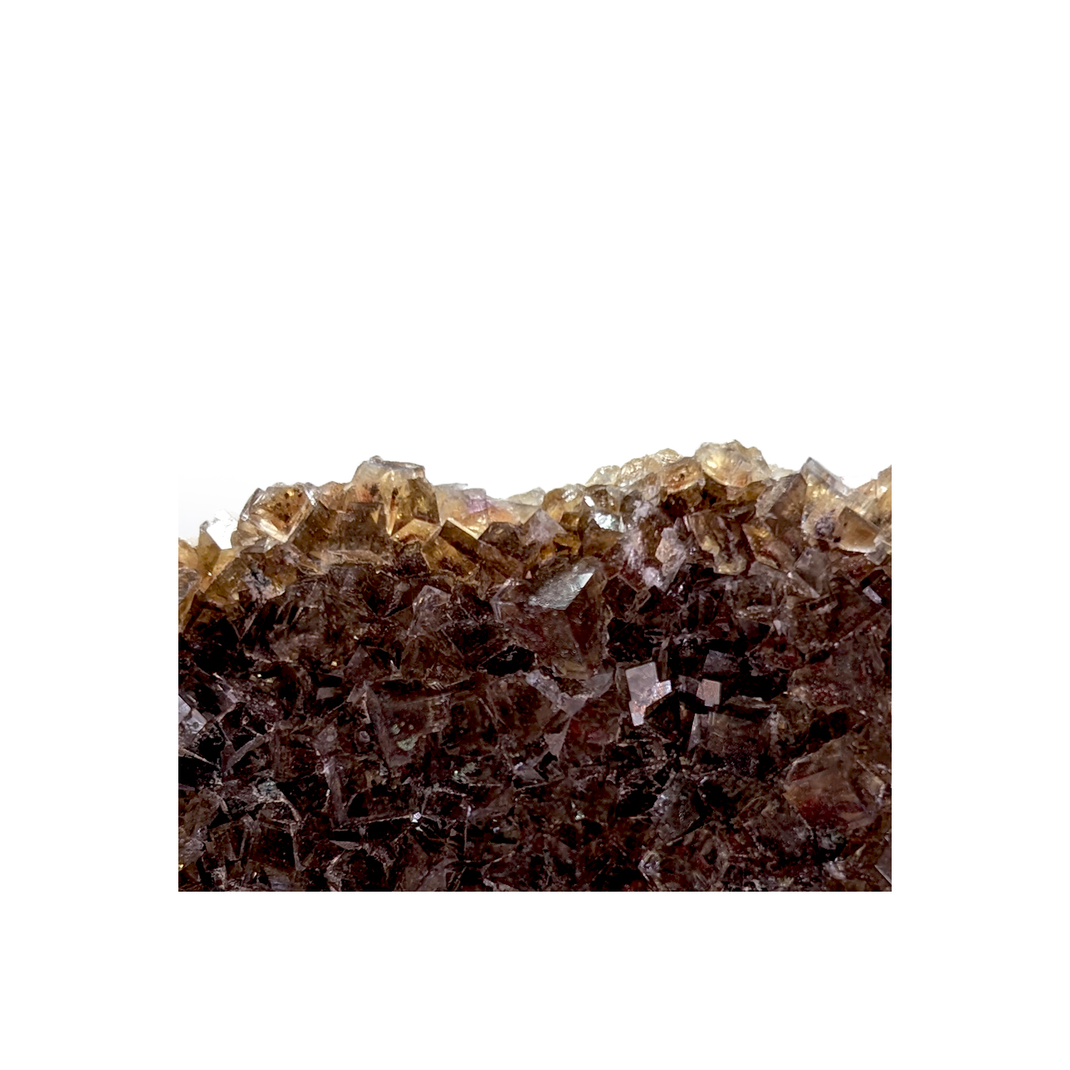 German fluorite with brilliant yellow crystals containing finely drawn blue phantoms and sometimes a red core.