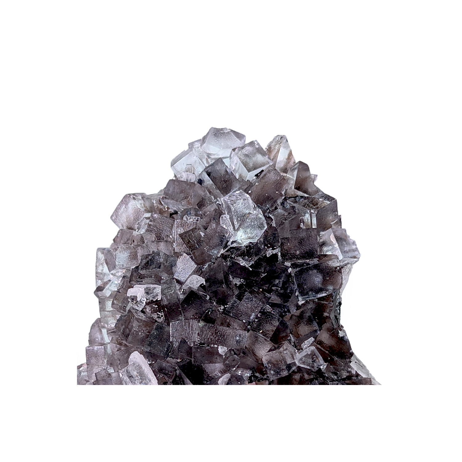 A delicate fluorite specimen with transparent, slightly violet crystals. Note the numerous "lighter" crystal formations.