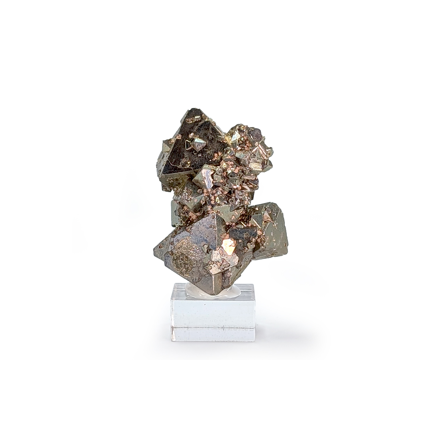 A beautiful little pyrite crystal forming a stack of golden octahedrons.