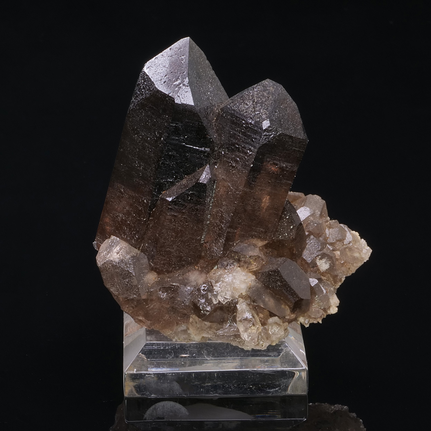 Very dark and stocky smoky quartz from the Rochassiers in Mont-Blanc, France.