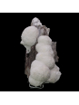 Large pompons of white and very shiny Barytes associated with orange-red Sphalerite, all on matrix. Specimen from the Cedres in France.