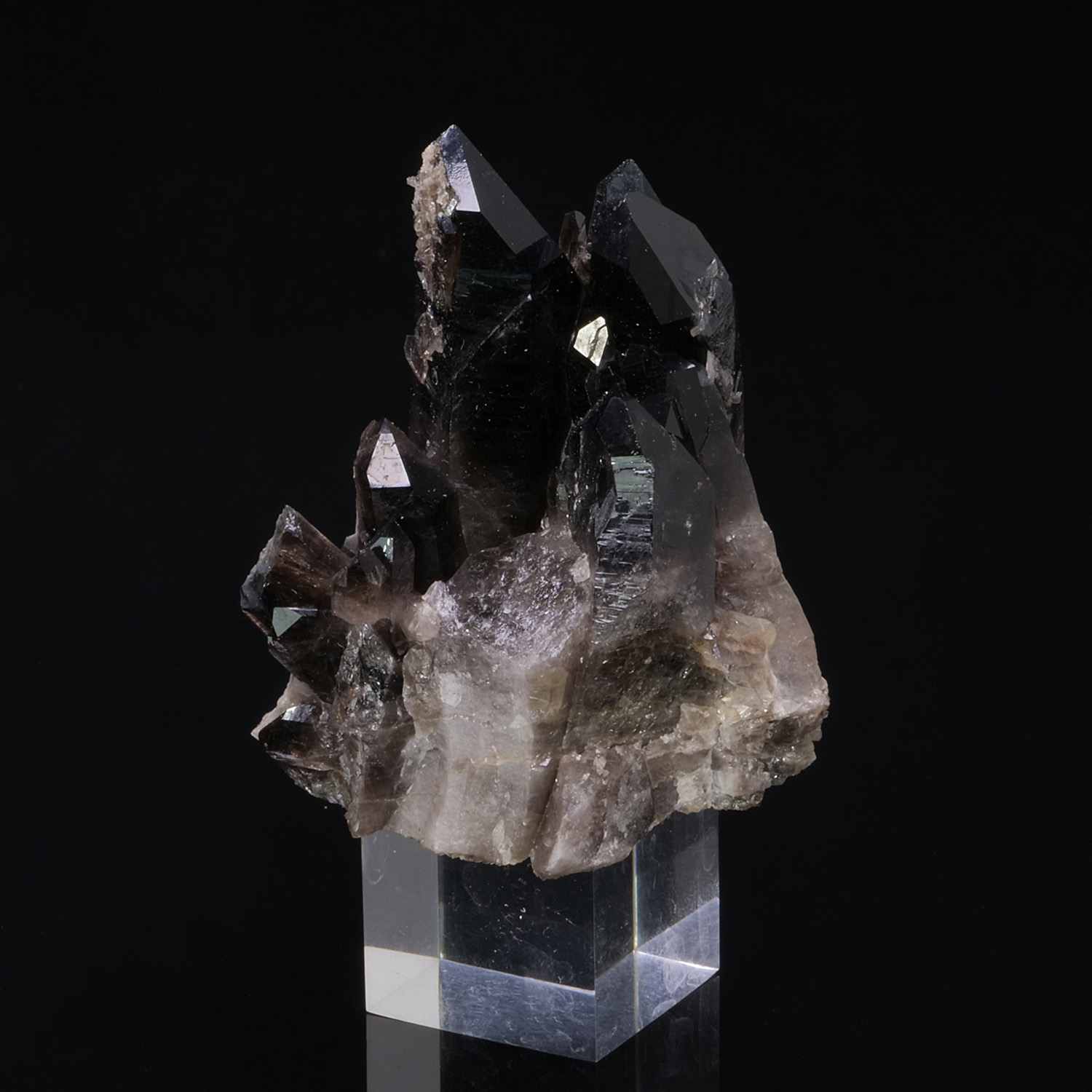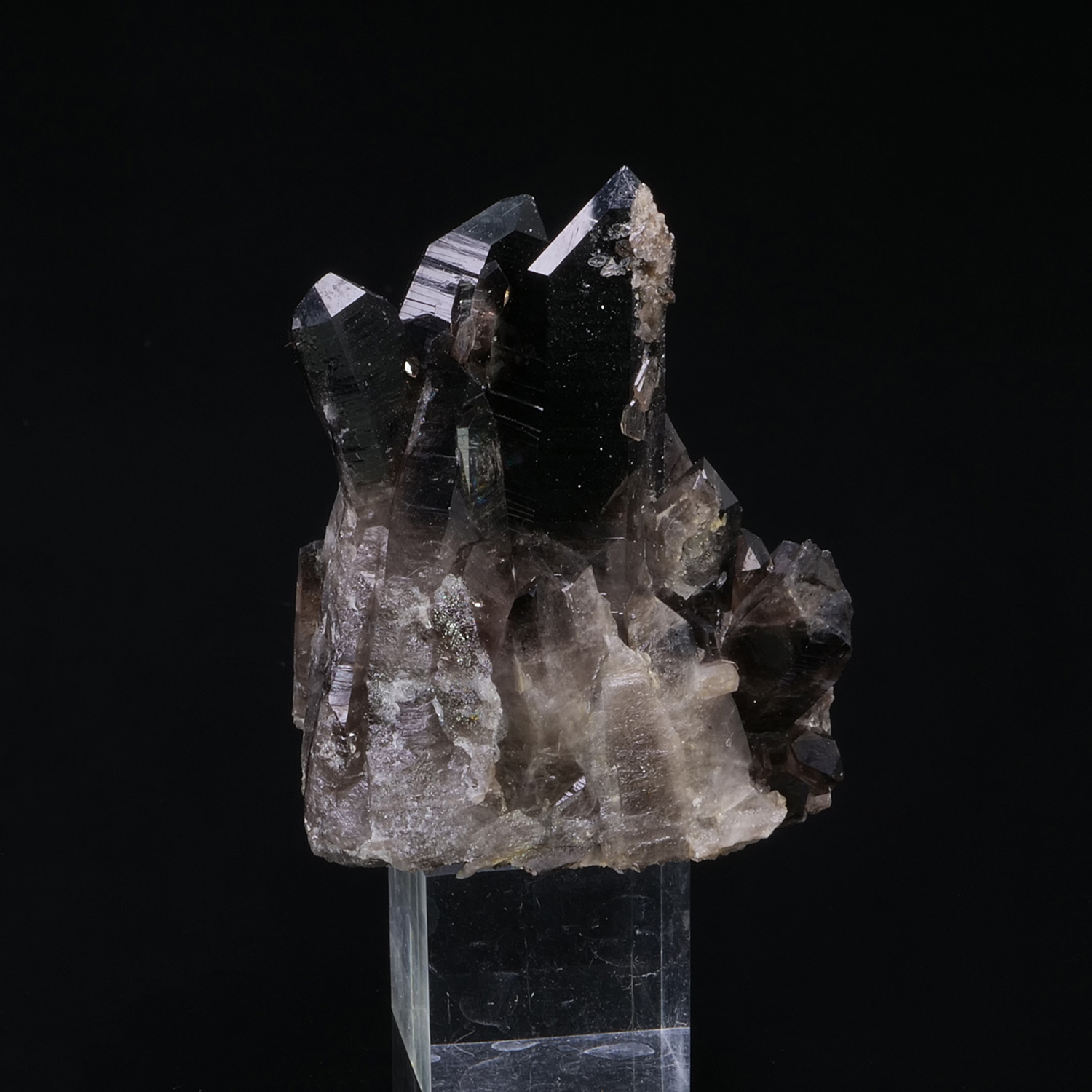 Well-formed smoky quartz group from Mount Ida in the USA. The smoke of the Quartz, almost Morion, is the result of irradiation, a very popular process in Arkansas at the time when these specimens were extracted.