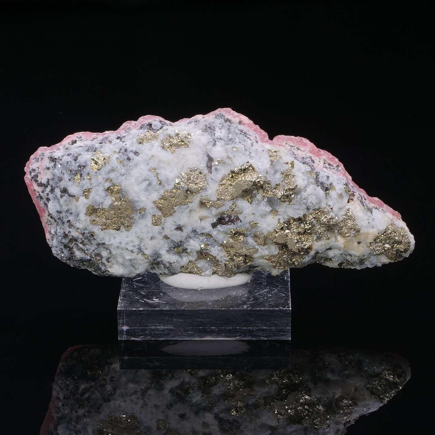 RHODOCHROSITE on PYRITE and QUARTZ - Oppu Mine, Nishimeya-mura, Nakatsugaru, Aomori, Japan