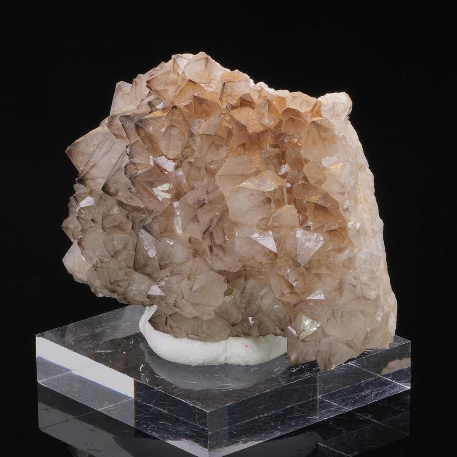 Plate covered with smoky quartz from Madagascar. The smoke of the Quartz is very pronounced at the tips.
