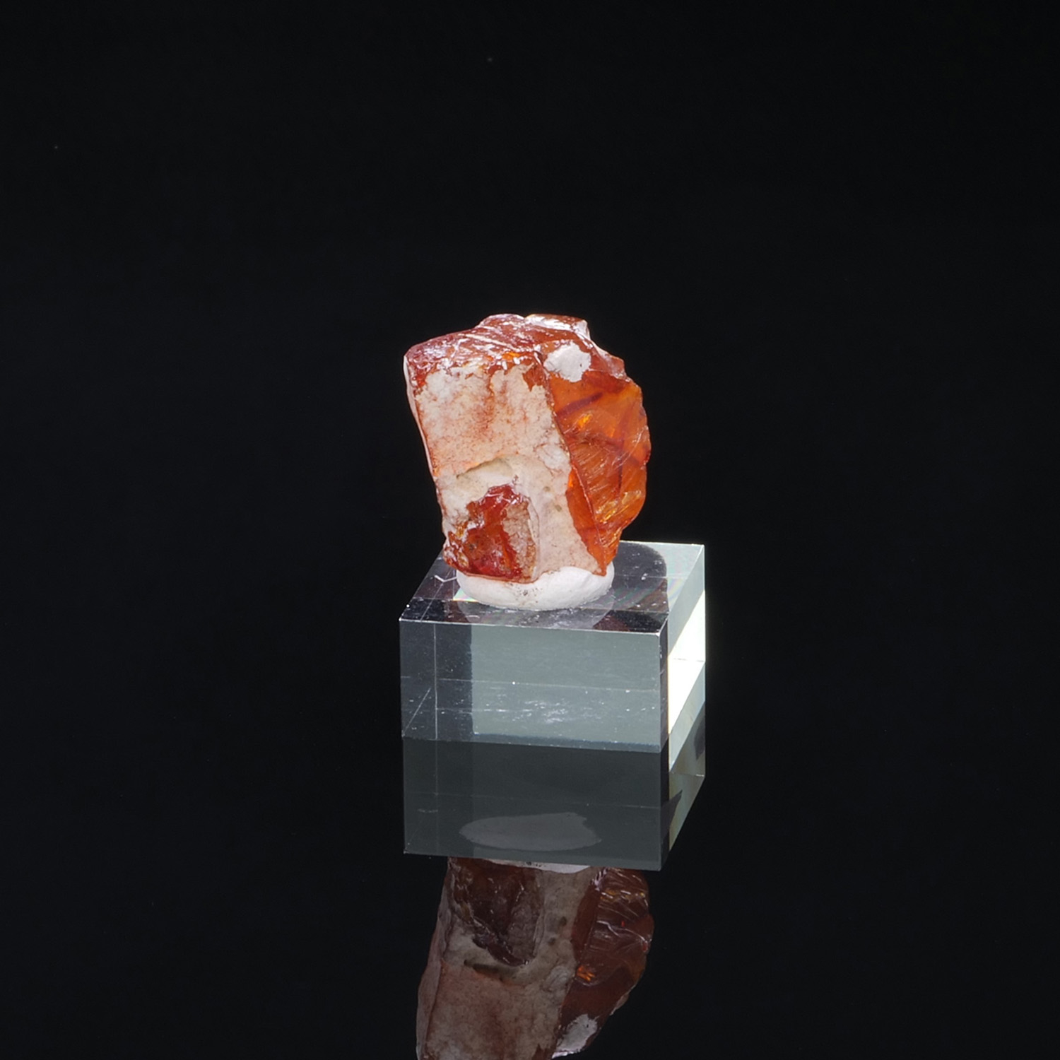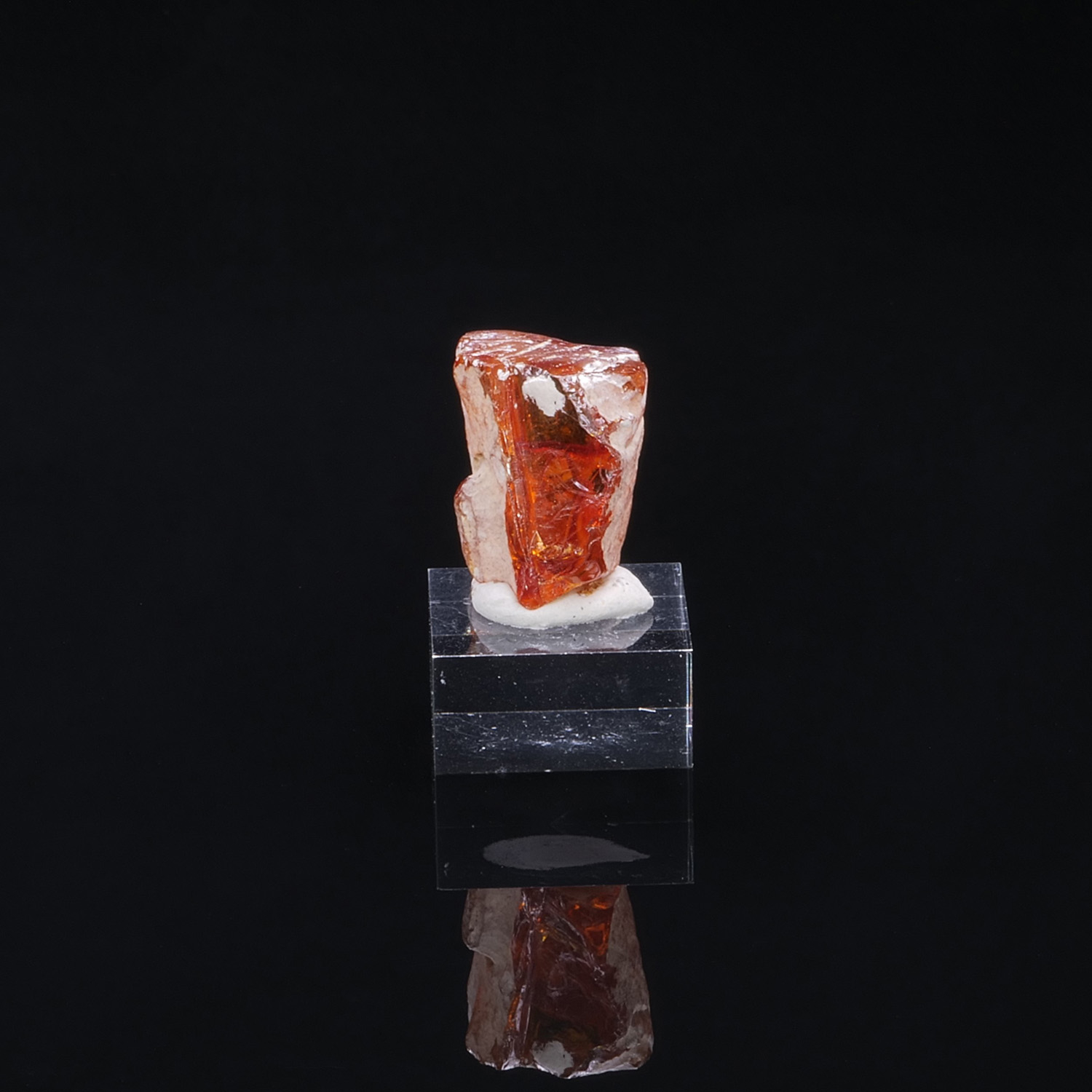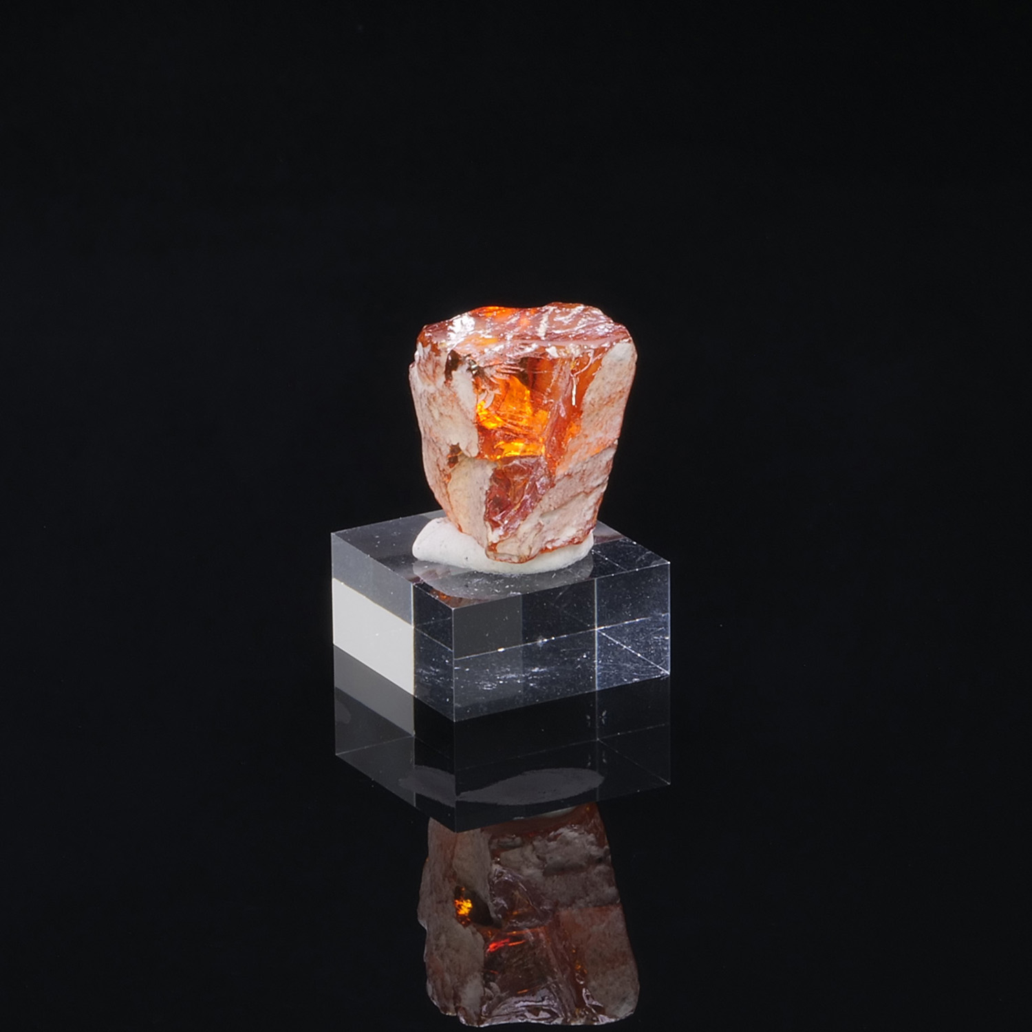 This remarkable orange-red amber specimen comes from the fossiliferous amber deposit of Compiegne, in the department of Oise, France. It is about 53 million years old.