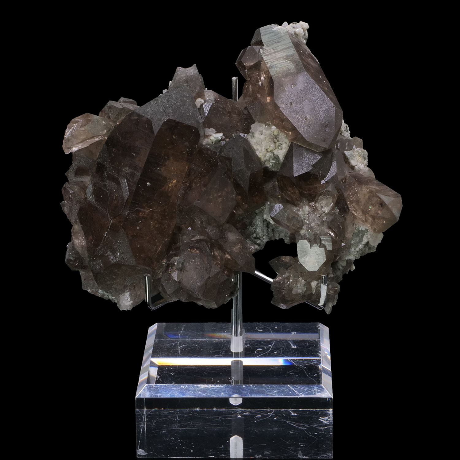 Group of finished and biterminated smoked quartz with a well-pronounced color and translucent at the same time. Specimen from the Argentiere glacier, Mont-Blanc, France.