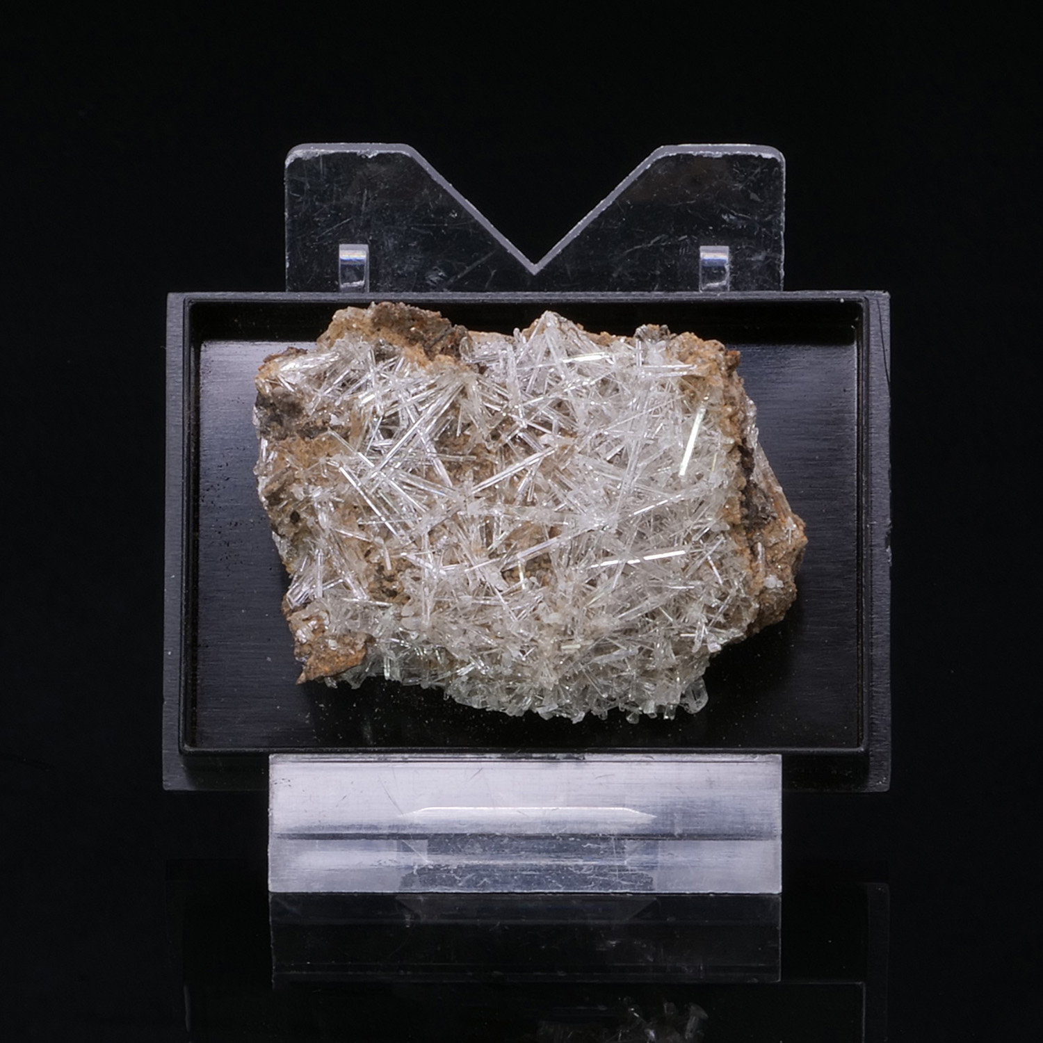 Specimen with finesse with these colourless and glossy gypsum needle-shaped crystals. Gypsum from the San Timoteo mine in Spain.