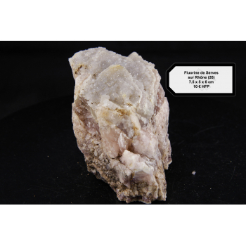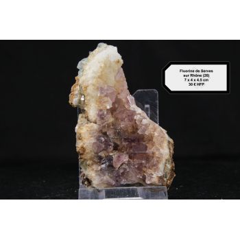 Fluorine et quartz – Serves sur Rhône (26) - FranceMinéraux : Fluorine + quartzDimension (L x l x H): 7 x 4 x 4,5 cmPoids : 98 grammesPrix : 30 € HFPInformations complémentaires : Pièce de fluorine de Serves sur Rhône (26) provenant d'un filon secondaire peu connu.Elle est composée de cubes de...