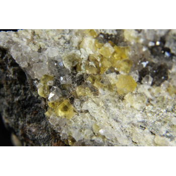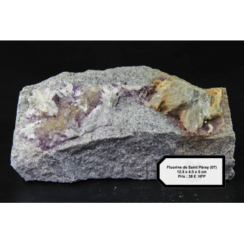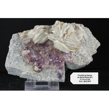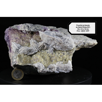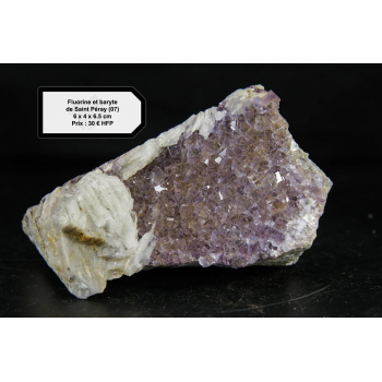 Fluorine et baryte de Saint Péray – Ardèche (07) - FranceMinéraux : Fluorine + baryte + chalcopyriteDimension (cm - L x l x H) : 11 x 8 x 5 cmDimension des plus gros cubes : environ 0,5 cmPoids : 417 grammesPrix : 60 € HFPInformations complémentaires :Pièce originale de...