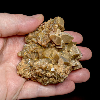 Échantillon de baryte aux cristaux de couleur miel dont quelques uns sont gemmes.Pièce esthétique malgré quelques légères casses éparses.Elle provient d'Iglesias, Province de Sardaigne du Sud, Sardaigne, Italie.D'un poids de 311 grammes, elle mesure 8,7 cm de long pour 7,2 cm de large et 4,7 cm...