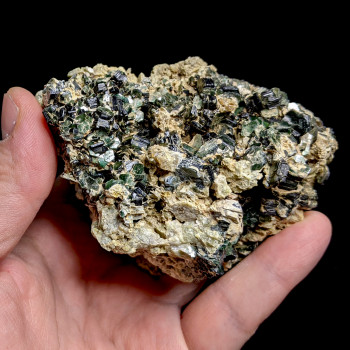 Joli et rare cristal hexagonal de Nepheline qui a subi une transformation en Muscovite. Ce spécimen provient de Tanzanie, a une très belle cristallisation et est bien formé. Excellent thumbnail.1,35 x 1,30 x 1,30 cmRéférence : 0979