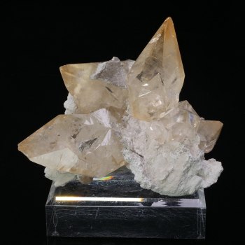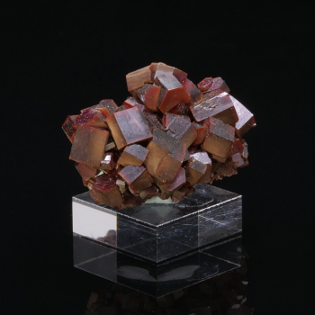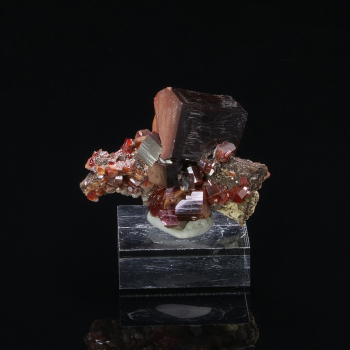 Magnifique échantillon provenant du Maroc avec des cristaux plus grands présentant une superbe couleur. De grands cristaux avec une forme tabulaire épaisse, la grande majorité biterminés, brillants et avec une couleur rougeâtre-brunâtre très vive avec des5,60 x 4 x 3,20 cmRéférence : 4201