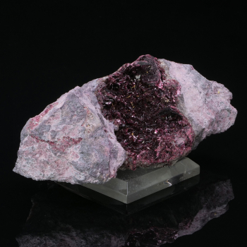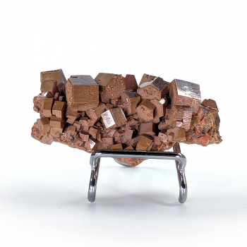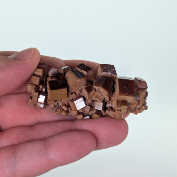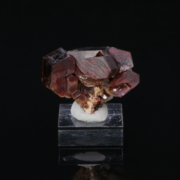 Magnifique échantillon provenant du Maroc avec des cristaux plus grands présentant une superbe couleur. De grands cristaux avec une forme tabulaire épaisse, la grande majorité biterminés, brillants et avec une couleur rougeâtre-brunâtre très vive avec des4 x 3,50 x 3,60 cmRéférence : 4255