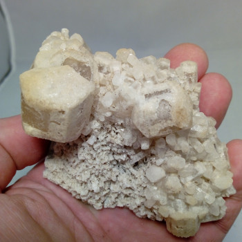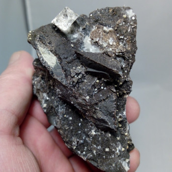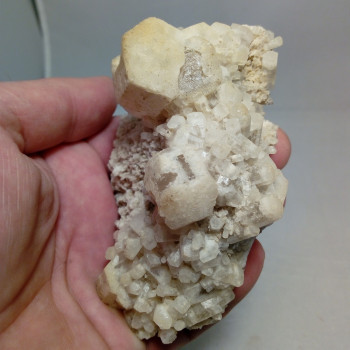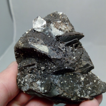 Différentes générations et cristallisation de Calcite (Aragonite ?) sur cette pièce. Les gros rhomboèdres bitérminés ont des traces de dissolution naturelle. Une curiosité d'Arbouet en excellente condition !10 x 7,5 x 5 cmRéférence : 0090