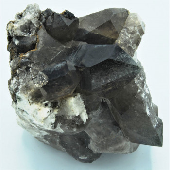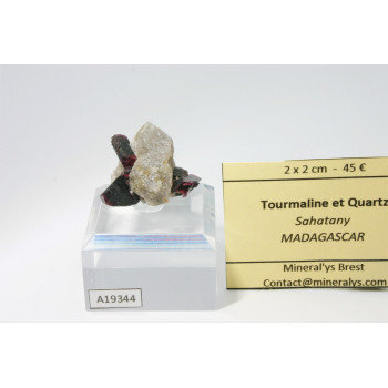 Cristaux de rubellite et de tourmaline melon d'eau inclus dans un quartz fum en association avec de la muscovite. Pièce ancienne issue de la collection de Paul Zerfass.10,3 x 7,1 x 5,9 cmRéférence : 0174