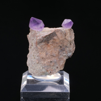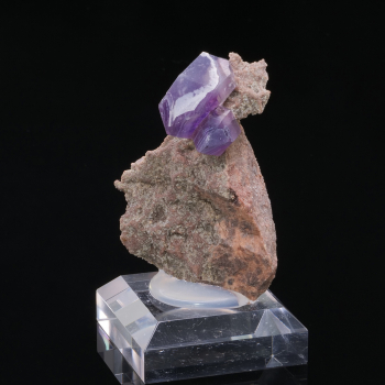 Cristaux biterminés d’Améthyste avec une couleur violette intense sur tous les cristaux, perchés sur gangue, provenant de Balkhash Lake au Kazakhstan. Les cristaux d’Améthyste sont brillants et limpides.5,60 x 4,70 x 2,70 cmRéférence : 4149