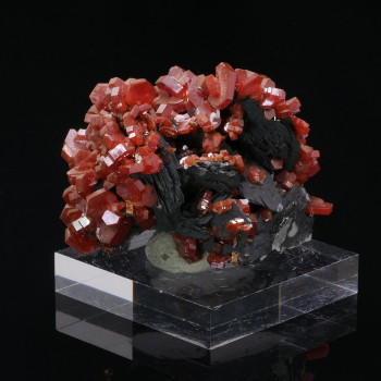 Plaque couverte de cristaux de Crocoïte bien formés et de belle qualité présentant une superbe couleur orange flamboyant. Cristaux de Crocoïte sur matrice provenant de la mine Adélaïde en Australie.7,90 x 6,10 x 2,50 cmRéférence : 4144
