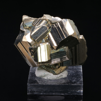 Inhabituel spécimen de Pyrite provenant de la mine Huanzala au Pérou. Chaque face présente des stries de croissance, mais chaque arête n’est pas totalement tranchante, elles sont comme biseautées et ont toutes une forme différente. Très bel esthétisme pour cette pièce. Cristaux lustrés et bien...