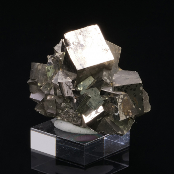 Cubes de Pyrite entrelacés entre eux pour formés ce spécimen provenant de la mine Huanzala au Pérou.5,90 x 4,90 x 3 cmRéférence : 4163