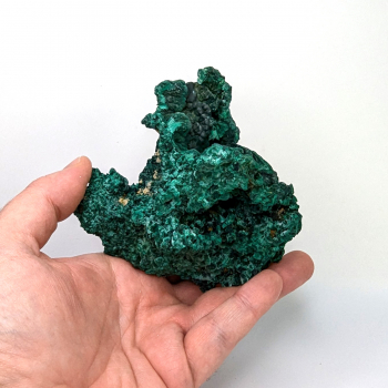 Pièce de malachite fibreuse de belle couleur et brillante, cristallisée sur tout son pourtour.Elle provient de Mindouli, département du Pool, République du Congo.Spécimen mesurant 10,4 cm de long pour 10,2 cm de large et 4,2 cm au plus épais.Son poids est de 325 grammes.Additional photos and...