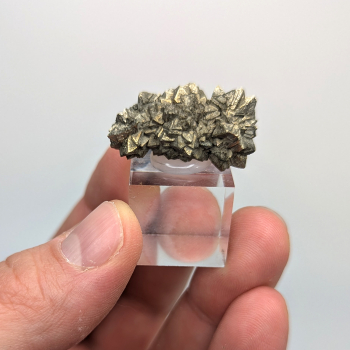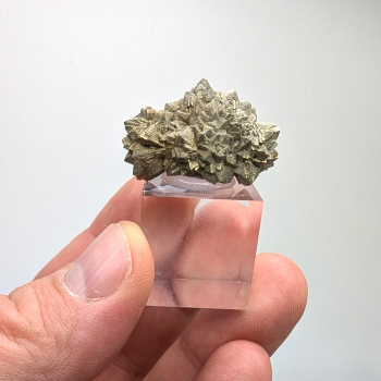 Jolie miniature de marcasite avec des mâcles sperkise sur tout le contour.Elle provient des falaises du Cap Blanc-Nez à Escalles, Pas-de-Calais, France.Cet échantillon mesure 2,6 cm de long pour 1,6 cm de haut et 1,4 cm d'épaisseur.Son poids est de 7,7 grammes.(Mesures hors socle)Photos...