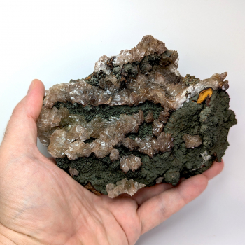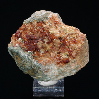 Grand spécimen présentant une boule de cristaux de Sphalérite en parfait état avec cette architecture typique de la mine Elmwood aux Etats-Unis. Ils sont également gemmes et entre miel et rouge à la lumière. Fantastique pièce provenant d’une célèbre localité.13,70 x 10,70 x 7,20 cmRéférence : 3644