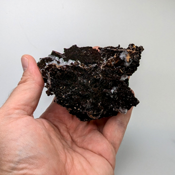 Jolie cristallisation de quartz blanc brillant, accompagnée de cristaux millimétriques de baryte et de pyrite.Elle provient de la mine de Cavnic, Maramures, Roumanie.Cette pièce mesure de 13 cm de long pour 8,9 cm de large et 4,3 cm au plus épais.Son poids est de 437 grammes.Photos...