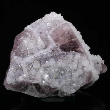 Superbe qualité pour ce spécimen provenant de la mine El Hammam au Maroc. Nous y voyons des cubes de Fluorite violet rose foncé associés à des cristaux de Quartz très bien formés qui apportent de la lumière, et de la Pyrite qui illumine le tout.12,70 x 8,40 x 8,90 cmRéférence : 3462
