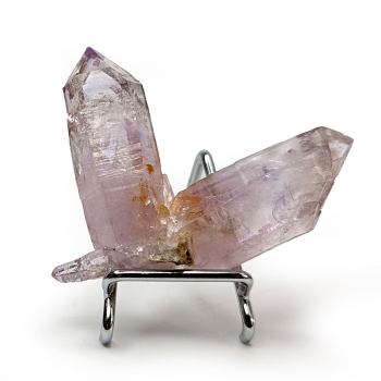 Paire de cristaux d'améthyste transparente et brillante, dont un des cristal a une double terminaison pour l'une fenestré et très fine pour l'autre. Cette pièce provient de Las Vigas, État de Véra Cruz, au Mexique. Elle mesure 5,5 cm de long (longueur des cristaux) pour 1,5 cm d'épaisseur. Son...
