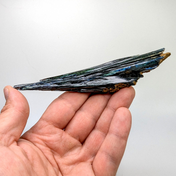 Gerbe de vivianite brillante avec de beaux reflets verts et bleus. Elle provient de Mine Cabeça do Cachorro, São Gabriel da Cachoeira, Amazonas, Brésil. Cette pièce mesure 13,2 cm de long pour 3 cm de large et 2,3 cm d'épaisseur. Son poids est de 62 grammes.Photos supplémentaires et commande en...