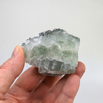 Fluorite bleue vert recouverte par des petites mouches de pyrite, reposant sur du quartz blanc. Pièce provenant de la mine de Fontsante, Tanneron, Var, Provence-Alpes-Côte d'Azur, France. Elle mesure 6,4 cm de long pour 4,8 cm de large et 4,6 cm d'épaisseur. Son poids est de 198 grammes.Photos...