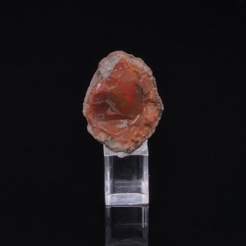 Joli nodule d’Opale orange-brun avec beaucoup de reflets jaune, vert, orange, rouge et bleu. Difficile à prendre en photo, une vidéo est jointe pour capter tout le détail de cette pièce.2,70 x 2,20 x 1,20 cmRéférence : 3127