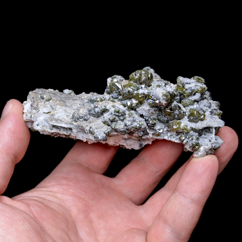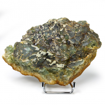 Pièce riche en cristaux de cléophane, variété de sphalérite verte, avec quelques cristaux de calcite et galène.Elle provient du secteur minier de Madan, province de Smolyan, Bulgarie.Cet échantillon mesure 10,1 cm de large pour 5,1 cm de haut et 4,3 cm d'épaisseur.Son poids est de 160 grammes....