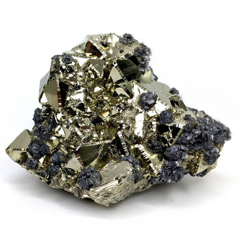 Pyrite brillante aux cristaux octaédriques, avec un recouvrement partiel de sphalérite.Elle provient des mines Huaron dans la province Pasco au Pérou.Cette pièce mesure 7,3 cm de long pour 4,4 cm de large et 4,6 cm d'épaisseur.Elle pèse 266 grammes. Référence : 1212Photos supplémentaires et...