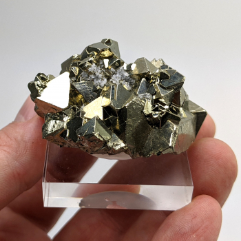 Esthétique pyrite péruvienne brillante, aux cristaux octaédriques.Elle provient des mines Huaron dans la province Pasco au Pérou.Cette pièce mesure 5 cm de long pour 3,9 cm de large et 2,6 cm d'épaisseur.Elle pèse 86 grammes.(Mesures hors socle) Référence : 1213Photos supplémentaires et commande...